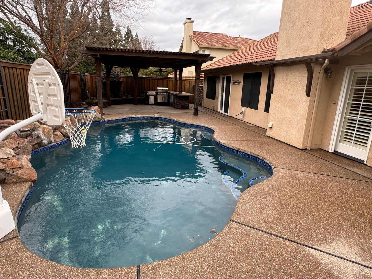 Immaculate property! Walking distance to Woodcreek HS. Beautiful courtyard entry, single level 3bd/2ba. 1770 sf home with large primary suite. The backyard is an entertainer’s delight featuring a pool, coverage patio with built-in outdoor fireplace & BBQ. Wood floors throughout, central heating & air, & 2 car garage with opener. All appliances included: gas stove, dishwasher, microwave, refrigerator, washer & dryer. **Pets are not allowed** 12 month lease to start.